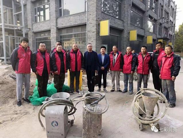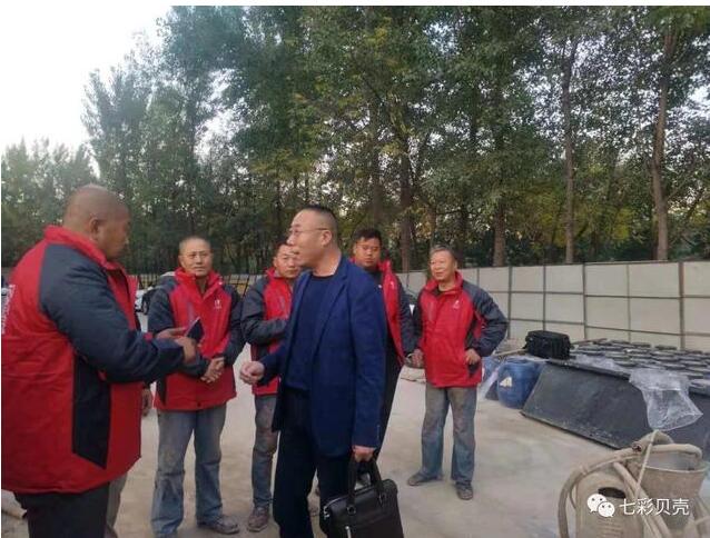 七彩貝殼香港集團無限公司董事長郭潮連先生率領公司管理部門人員前往陜西西安工地給外地的機噴聯盟的成員送暖和。